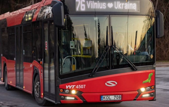 Das Erste, was man beim Busfahren in Vilnius sieht, ist die Linienzielanzeige (so heißt das Ding oben vorn über dem Busfahrer). Dort steht nicht nur die Endhaltestelle und die Busnummer wie in allen zivilisierten Ländern, es steht auch “Vilnius ❤️ Ukraine”. Warum das so ist, wird klar, wenn man auf dem Weg zum “Tor der Morgenröte”, dem letzten verbliebenen offiziellen Stadttor, einen Richtungspfeil sieht: “Minsk”, rechts abbiegen. Bis zur weißrussischen Grenze (jaja, “Belarus”), dem Land, in dem Putin aktuell geschätzte mindestens 100.000 Soldaten stehen hat, sind es 40 km. Und so hat man hier auch nach 1500 Kriegstagen, wo wir in Deutschland schon wieder über die Abschiebung von ukrainischen Geflüchteten diskutieren, den Krieg nicht vergessen, denn nach Einschätzungen der Leute, die sowas einschätzen müssen, könnte Vilnius in 1500 Tagen das gleiche passieren, was seit ebenso vielen Tagen Kiew widerfährt - eine russische Aggression.